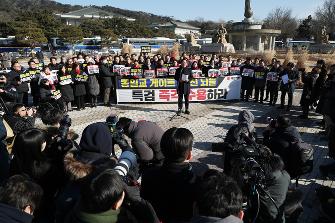 [프라임경제] 국민의힘은 청와대 앞에서 규탄대회를 열고 '통일교 게이트·더불어민주당 공천 헌금 의혹'에 대한 쌍특검 수용을 촉구했다.
