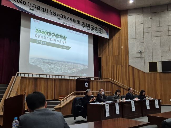 이번 공청회는 '도시공원 및 녹지 등에 관한 법률'에 따라 10년마다 대구의 공원 미래상을 정립하기 위해 수립하는 공원녹지기본계획(안)을 공유하기 위해 마련됐으며, 관련 전문가, 구·군 정책 담당 공무원, 시민 등 100여 명이 참석했다.