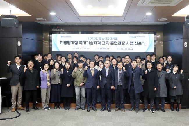 영남이공대학교는 지난 19일 천마스퀘어 1층 컨벤션홀에서 '2026년도 과정평가형 국가기술자격 교육·훈련과정 시행 선포식'을 개최하고, 전국 최초이자 최다 규모로 과정평가형 국가기술자격을 운영하는 대학임을 공식 선언했다.