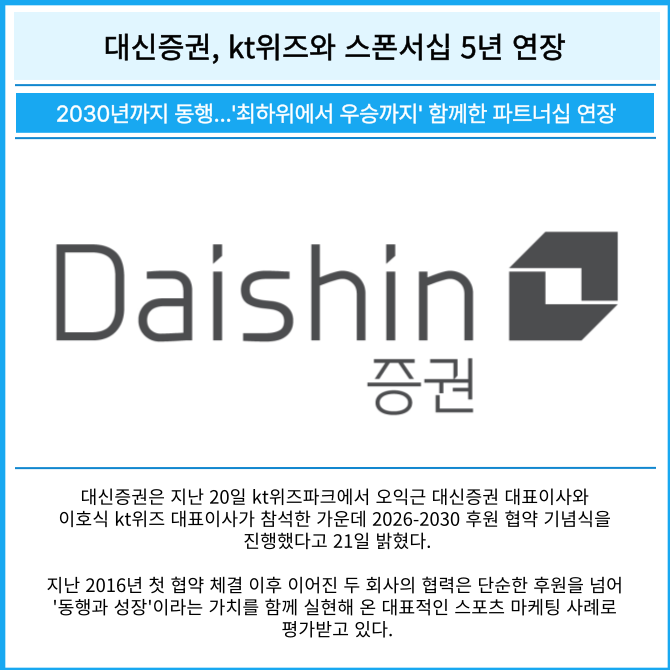 [카드] 대신증권, kt위즈와 스폰서십 5년 연장