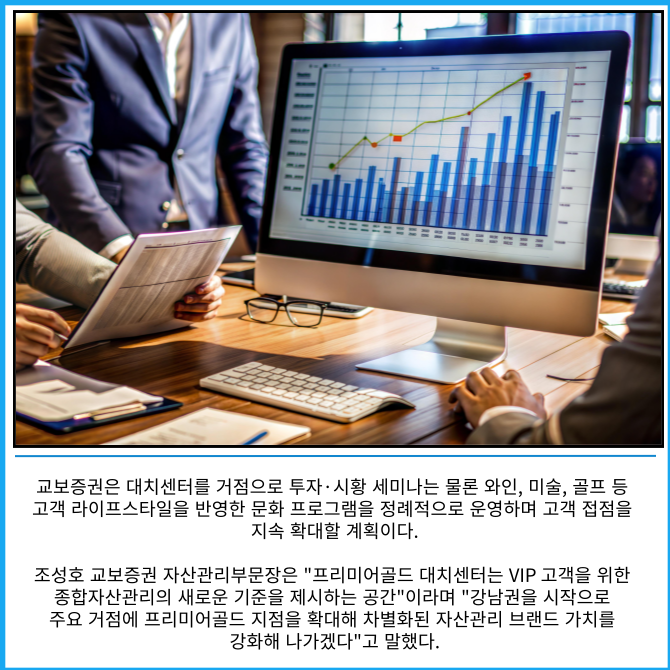 '프리미어골드 대치센터'는 자산가 밀집 지역인 서울 강남구 대치동에 위치한 교보증권의 1호 프리미엄 점포다.