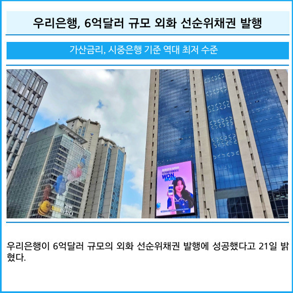 [카드] 우리은행, 6억달러 규모 외화 선순위채권 발행