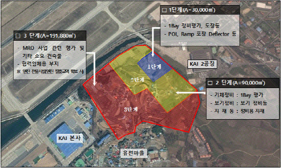 이미 1·2단계 사업을 통해 항공정비 전문기업인 한국항공우주산업(KAI)와 한국항공서비스(KAEMS)에서 항공기 격납고, 정비행거동을 구축, 국내외 항공사를 대상으로 민간 항공기 중정비 및 개조작업을 수행하고 있다.