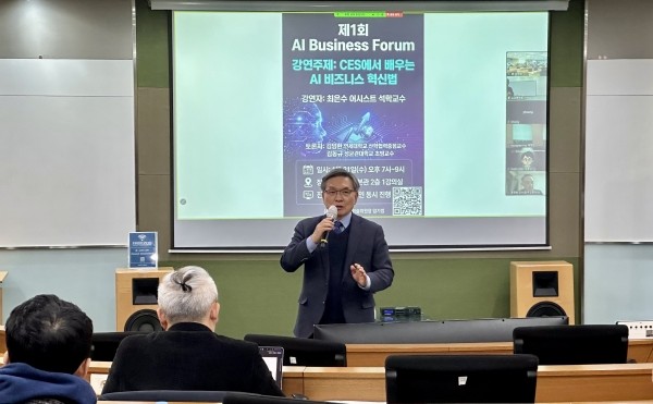 서울과학종합대학원대학교(aSSIST)는 지난 21일 ‘제1회 AI Business Forum’을 열고, ‘CES에서 배우는 AI 비즈니스 혁신법’을 주제로 강연을 진행했다. 이번 포럼은 AI경영학회가 주최했으며, 발제는 국내 영상분석 AI 기업 인텔리빅스 대표이자 CES 2025·2026 혁신상 심사위원으로 활동한 최은수 aSSIST 석학교수가 맡았다.