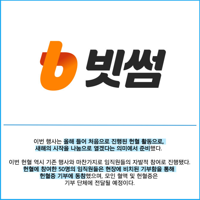 [프라임경제] 빗썸은 지난 21일 서울 강남구 삼원타워 정문 앞에 마련된 헌혈버스에서 임직원을 대상으로 헌혈 및 헌혈증 기부 봉사활동을 진행했다고 23일 밝혔다.