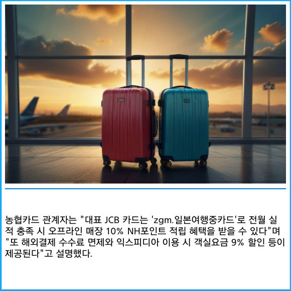 [프라임경제] NH농협카드가 일본 여행을 떠나는 고객들을 위한 특별한 혜택을 제공한다고 23일 밝혔다.