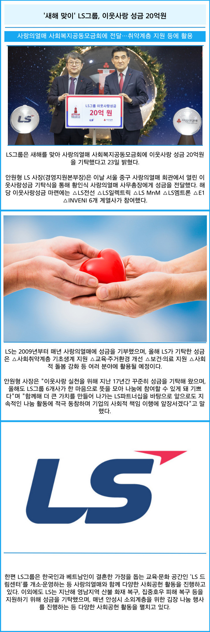 [카드] '새해 맞이' LS그룹, 이웃사랑 성금 20억원