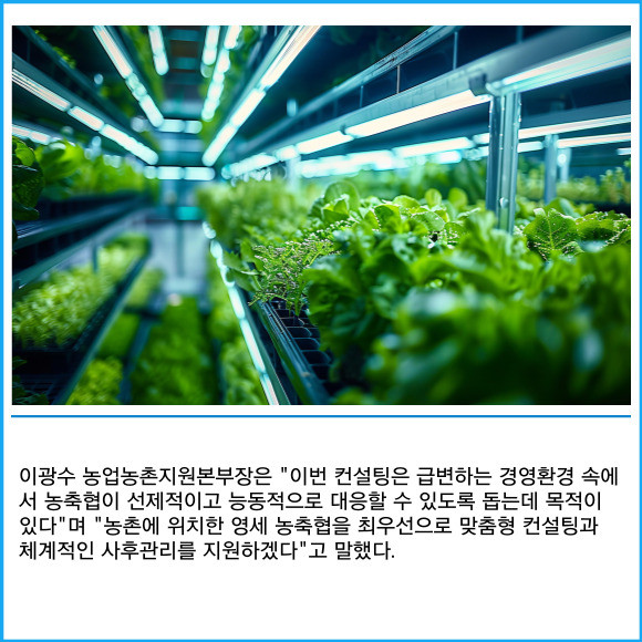 [프라임경제] 농협중앙회가 지난 21일 경북 김천혁신농협을 시작으로 농축협의 지속가능한 발전과 경쟁력 강화를 위한 컨설팅을 진행한다고 23일 밝혔다.