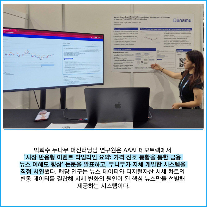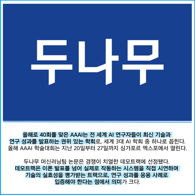 [프라임경제] 디지털자산 거래소 업비트를 운영하는 두나무는 자사 머신러닝팀 논문이 국제 인공지능(AI) 학술대회 '인공지능 발전 협회(AAAI)'의 데모트랙(Demo Track)에 채택돼 성공적으로 시연을 마쳤다고 26일 밝혔다.