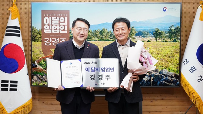 [프라임경제] 김인호 산림청장은 26일 정부대전청사에서 이달의 임업인(1월)으로 선정된 제주특별자치도 서귀포시 더덕 생산 임업인 강경주 씨에게 현판과 상패를 수여했다.