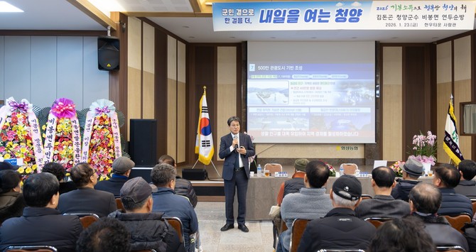 이와 함께 군은 △공공기관 유치 성과 △산업 여건 개선 △정주 환경 조성 △지역 특화 맞춤형 농정 추진 등 12개 핵심 분야를 중심으로 군정 비전을 제시했다. 현재 추진 중인 주요 사업의 차질 없는 마무리와 함께 미래 성장 동력 발굴을 통해 지속 가능한 청양군으로 도약하겠다는 의지를 분명히 했다.