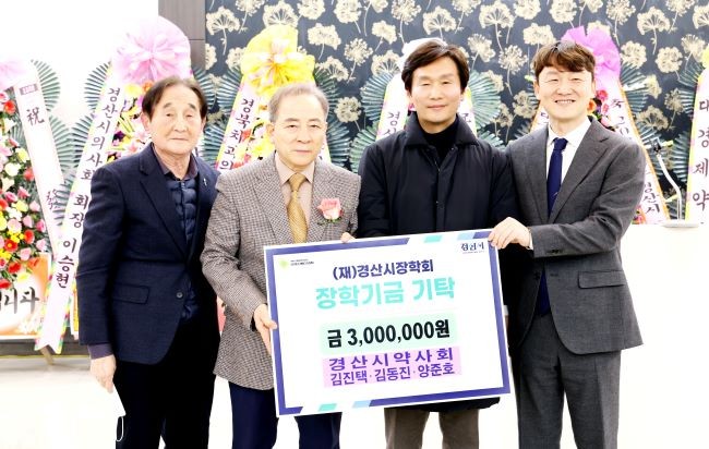 또한 금화약국 김진택 대표, 명산 온누리약국 김동진 대표, 동산약국 양준호 대표는 인재 양성을 위해 경산시장학회에 각 100만원씩 기탁하며 지역 사랑 실천에 앞장섰다.