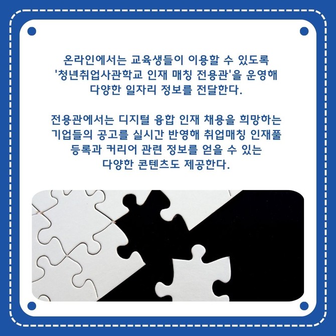 [프라임경제] 잡코리아(대표 윤현준)는 디지털 융합 역량을 갖춘 우수 인재 양성을 위해 청년취업사관학교 일자리 연계 지원 프로그램을 운영한다고 27일 밝혔다.