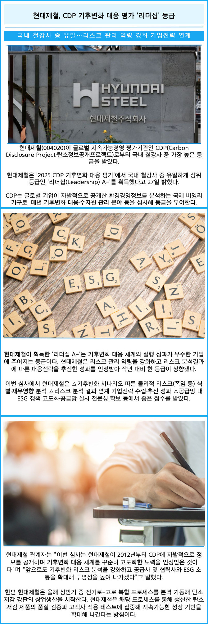 [카드] 현대제철, CDP 기후변화 대응 평가 '리더십' 등급