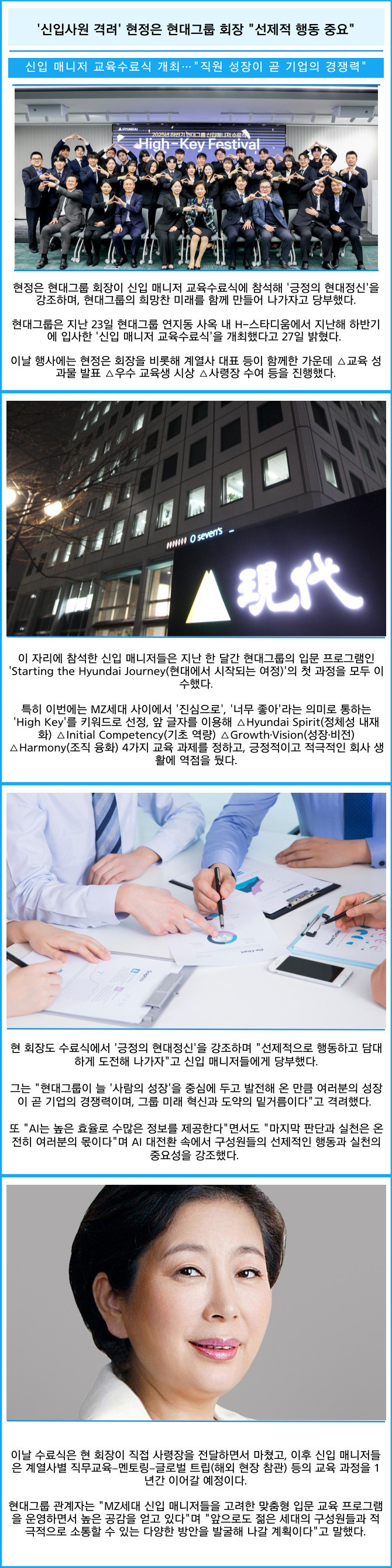 [카드] '신입사원 격려' 현정은 현대그룹 회장 "선제적 행동 중요"