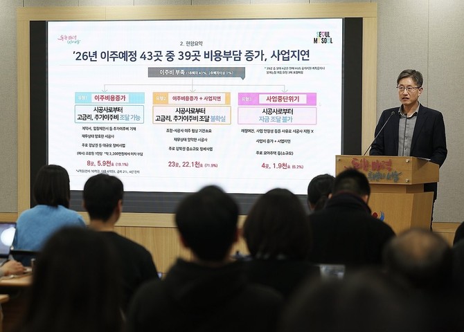 최진석 서울시 주택실장은 "이주비 대출은 단순 가계대출이 아니라 주택공급을 위한 필수 사업 비용으로 인식하고 정책적 패러다임을 시급히 전환해야 한다"라며 "예정된 주택 공급 일정에 차질이 발생하는 상황이 속히 개선돼야 하며 시민 주거 안정과 정비사업 정상화를 이끌어내기 위해 모든 행정력을 집중하겠다"라고 전했다.