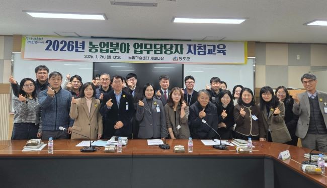 [프라임경제] 청도군(군수 김하수)은 지난 26일 농업기술센터에서 2026년 농업분야 업무담당 공무원 역량강화 지침교육을 실시했다.