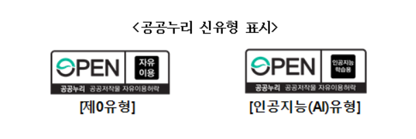 기존 공공누리 유형(제1~4유형)의 이용조건은 유지하면서 AI 학습 목적으로는 공공저작물을 자유롭게 활용할 수 있는 'AI유형'도 새롭게 마련했다.