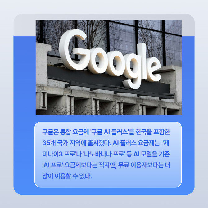 [카드] 구글, 월 1만1000원 저가 AI요금제 출시