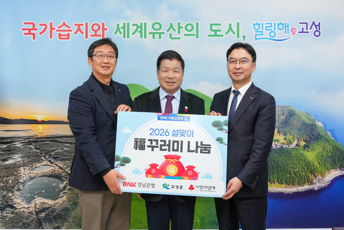 고성군은 임재문 BNK경남은행 서부영업그룹부행장이 1월26일 고성군청을 방문해 관내 어려운 이웃을 위해 써 달라며 450만 원 상당의 '설날맞이 복꾸러미'(식료품세트 18종) 100박스를 전달했다고 28일 밝혔다.