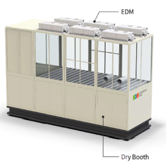드라이부스 또는 생산설비 상부에 설치 가능한 장비 제습 모듈(EDM)은 파티클을 제거하는 장비용 팬 필터 유닛(EFU)를 설치 위치에 적용할 수 있는 제품으로, 공간활용성이 뛰어나다. 또한 파티클과 절대습도를 동시에 저감할 수 있는 장점을 지닌다.