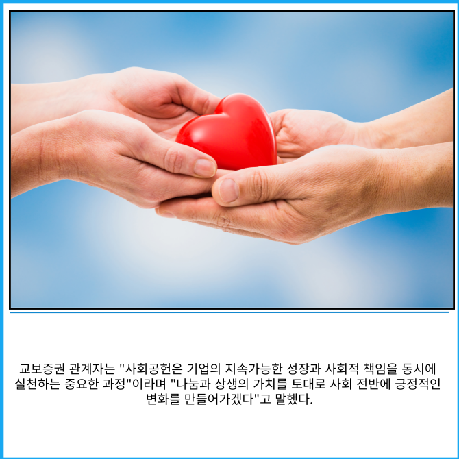 교보증권은 △미래세대 지원 △지역사회 참여 △자발적 동참 △친환경 중심으로 체계적인 활동을 전개할 계획이다.