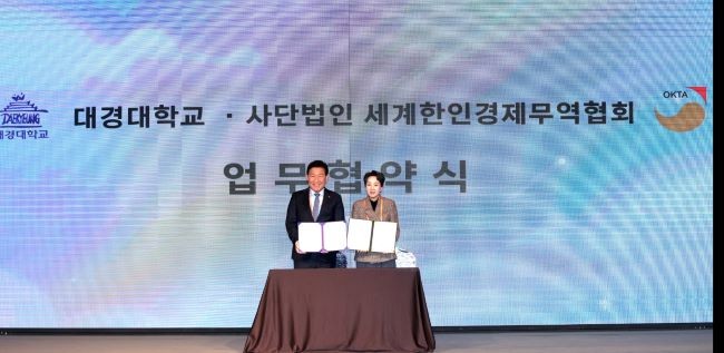 [프라임경제] 대경대학교(총장 이채영)와 (사)세계한인경제무역협회(회장 박종범, 이하 월드옥타 World-OKTA)가 중소기업중앙회(K-BIZ홀)에서 업무협약(MOU)을 체결했다.