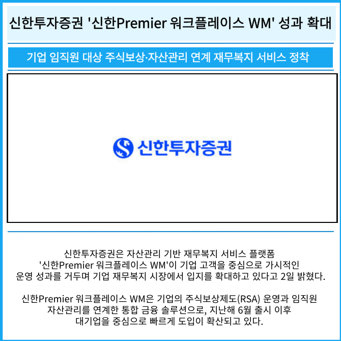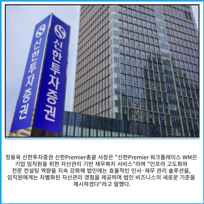 [카드] 신한투자증권 '신한Premier 워크플레이스 WM' 성과 확대