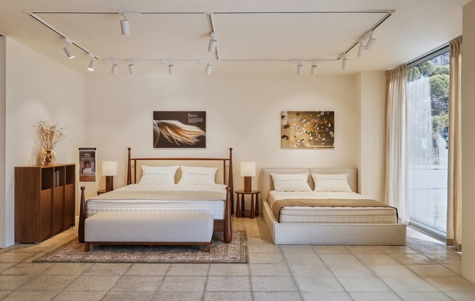 마테라소 매트리스를 비롯해 신제품 프레임 '아만', '베른', 모션 베드 '르 무브' 등 주요 제품을 중심으로 감각적인 침실 인테리어를 구현했다. 체험부터 상담, 구매까지 이어지는 원스톱 쇼핑 환경을 제공한다.