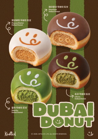노티드(Knotted)가 인기를 끌고 있는 '두바이 도넛' 라인업에 신메뉴 2종을 추가 출시한다.