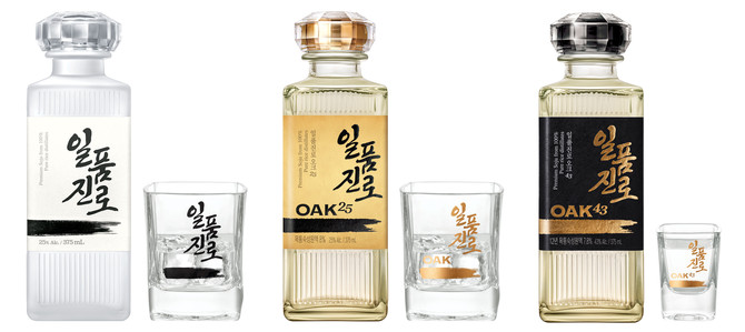 먼저 '일품진로 오크25(알코올 도수 25도)' 선물세트는 375ml 제품 3병과 온더락잔 2개로 구성됐다. 오크25는 목통 숙성을 거친 원액을 독자적인 블렌딩 노하우로 조합해 깊은 향과 풍미를 구현한 제품이다.