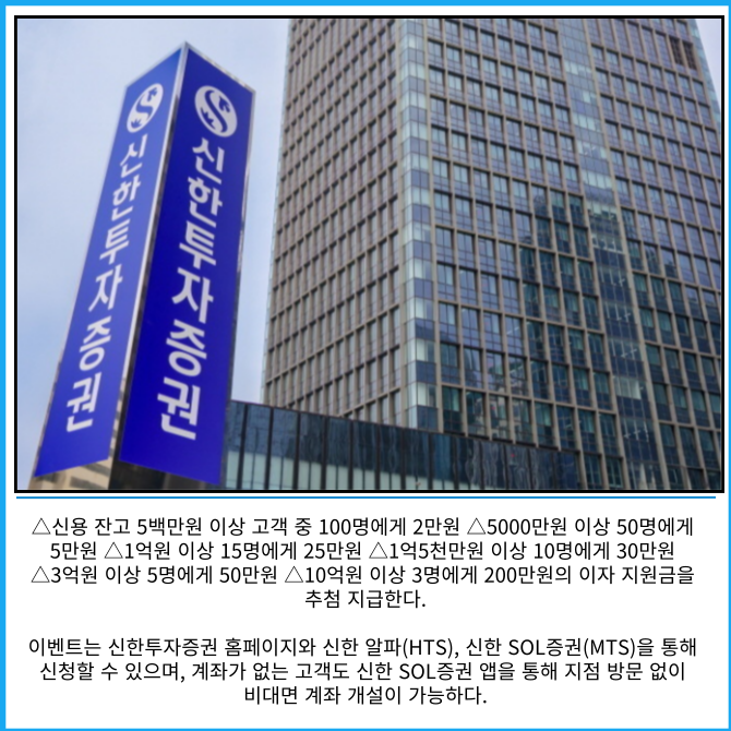 [카드] 신한투자증권, 신용융자 120일간 연 3.9%