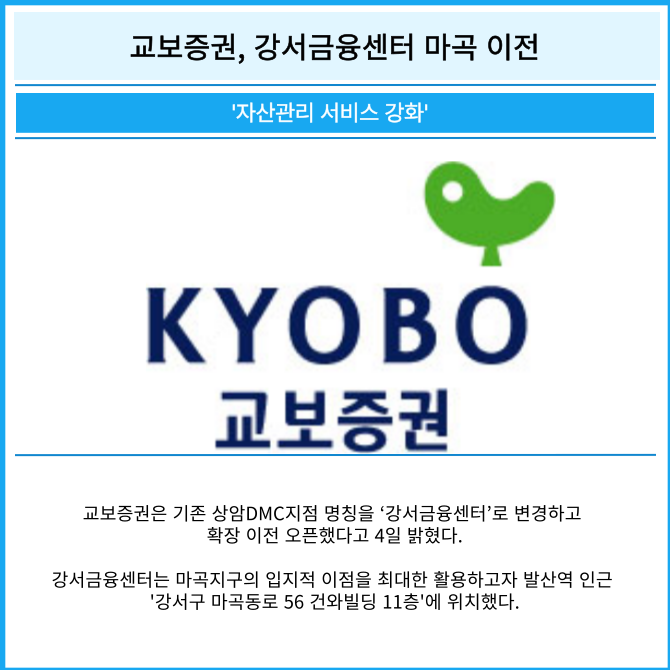 [카드] 교보증권, 강서금융센터 마곡 이전
