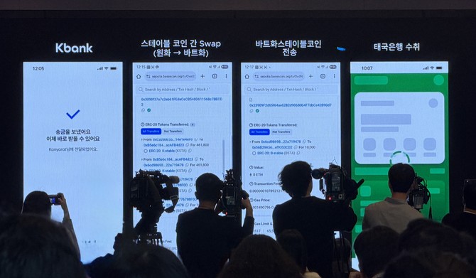 미래 성장 동력인 디지털 자산 분야에서는 독보적인 '퍼스트 무버'로서의 입지를 굳힌다. 케이뱅크는 이날 간담회에서 스테이블코인 기반의 해외 송금 기술을 직접 시연, 기존 수일이 걸리던 송금을 실시간으로 처리하고 수수료를 획기적으로 낮춘 혁신 사례를 공개했다.