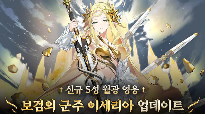 스마일게이트의 '에픽세븐'이 신규 월광 영웅 '보검의 군주 이세리아'를 업데이트 했다. 전투에서는 높은 반격 확률을 바탕으로 적에게 '상처' 효과를 주고 지속적인 추가 피해를 입히는 광속성 기사 영웅으로 활약한다. 반격과 상처 효과의 특성상 PVP 전투에서 적을 압박하는데 특화되어 있다. 또한, 스킬 사용시 자신에게 부여되는 고유 효과 '균열'을 통해 공격력을 크게 증폭시킬 수 있는 것이 특징이다. 균열은 공격력을 증폭시키는 대신 방어력을 낮추기 때문에 전략적인 활용이 요구된다.