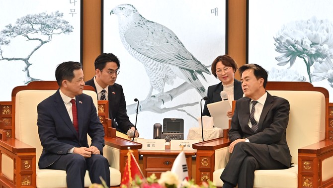 김 지사는 이날 접견에서 "중국에는 '화합이 번영을 만든다'는 뜻의 '화기생재(和氣生財)'라는 말이 있다"며 "이 말은 오늘날 한국과 중국의 관계에 그대로 적용될 수 있다"고 강조했다. 이어 "인문 교류가 점차 회복되는 상황에서 지방정부 차원의 실질적 협력은 양국 관계를 안정적으로 뒷받침하는 핵심 기반이 될 것"이라고 밝혔다.
