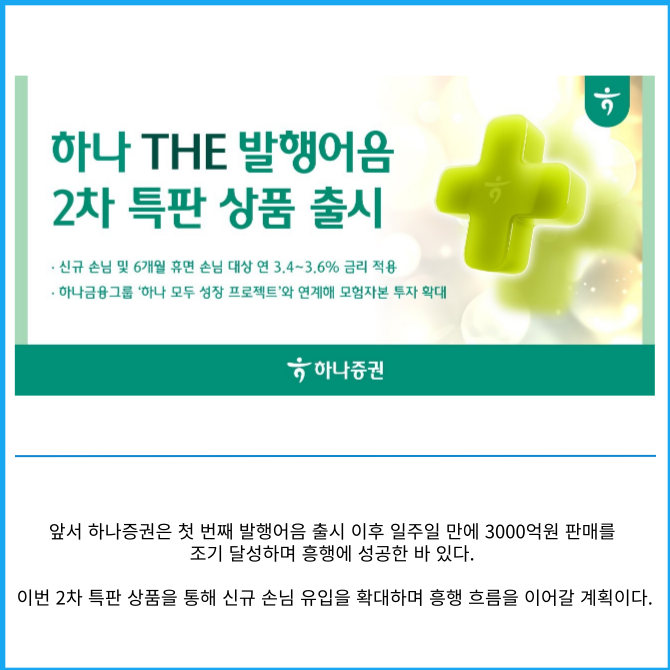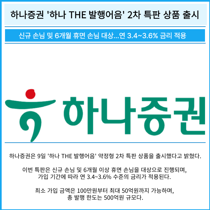 [카드] 하나증권 '하나 THE 발행어음' 2차 특판 상품 출시