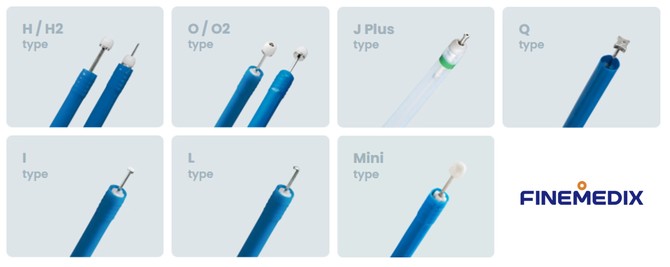파인메딕스의 클리어컷 나이프는 초기 암 병변을 제거하는 ESD 시술에 사용되는 절개도로, 총 7종으로 구성돼 시술 환경과 병변 특성에 맞는 다양한 팁 구조를 적용할 수 있다. 강화된 절연 기능으로 시술의 효율성과 안전성을 동시에 확보한 것이 특징이다.
