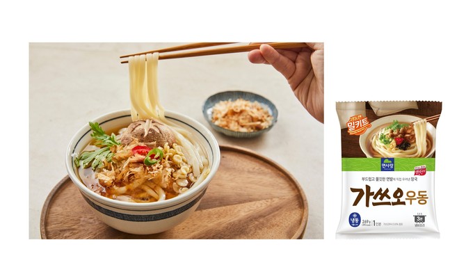 육수는 가쓰오부시와 게즈리부시, 완도산 다시마를 우려내 깊고 깔끔한 풍미를 살렸다. 급속 냉동 공법을 적용해 조리 후에도 탄력 있는 면발을 유지한다. 장기간 보관해도 품질이 유지되는 점도 특징이다.