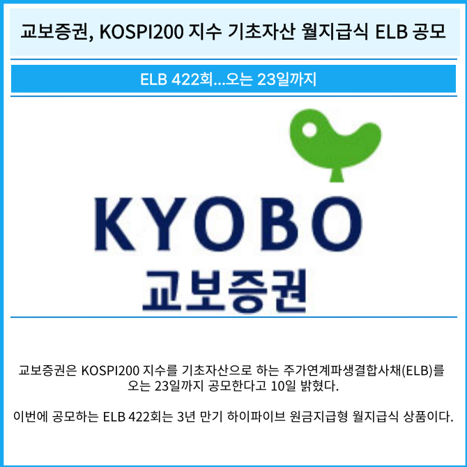 [카드] 교보증권, KOSPI200 지수 기초자산 월지급식 ELB 공모