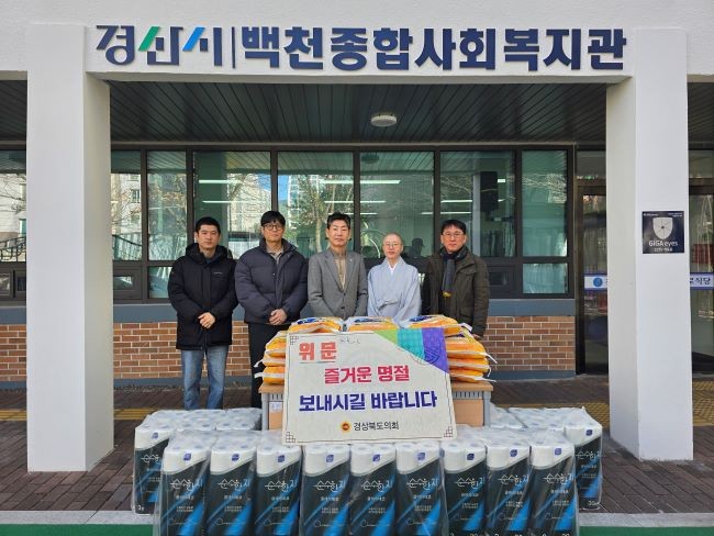 경북도의회 교육위원회 소속 차주식 의원(경산)은 지난 9일, 민족 최대의 명절인 설을 맞아 경산시 백천동에 소재한 '경산시 백천종합사회복지관'을 방문해 경북도의회에서 준비한 위문품을 전달하고, 명절의 따뜻한 정을 나눴다.