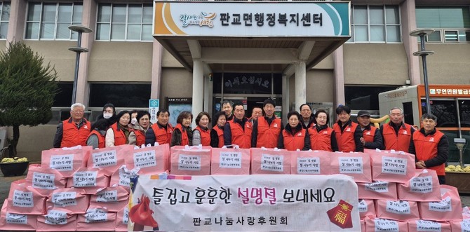 한상일 판교면장은 "지역 내 어려운 이웃들의 든든한 울타리가 되어 주고 있는 판교나눔사랑후원회에 감사드린다"며 "주민 모두가 따뜻하고 행복한 설 명절을 보내시길 바란다"고 전했다.