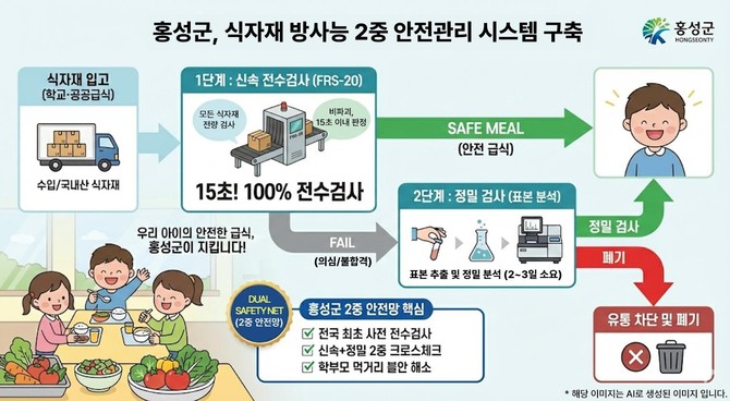 군은 먹거리통합지원센터를 중심으로 △학교급식 △공공기관 급식 식자재에 대한 방사능 검사를 단계적으로 확대 적용할 계획이다. 이상 징후가 확인될 경우 즉시 정밀 검사로 연계해 보다 철저한 안전관리를 시행할 방침이다.