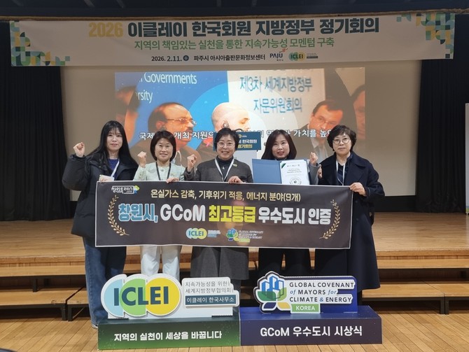 창원시는 글로벌 기후·에너지 시장협약(GCoM) 최고등급 도시로 선정돼, 2월11일 세계지방정부협의회(이클레이)가 주최하는 '지방정부 정기회의'에서 '2025년도 이행평가 최고등급'을 수상했다.