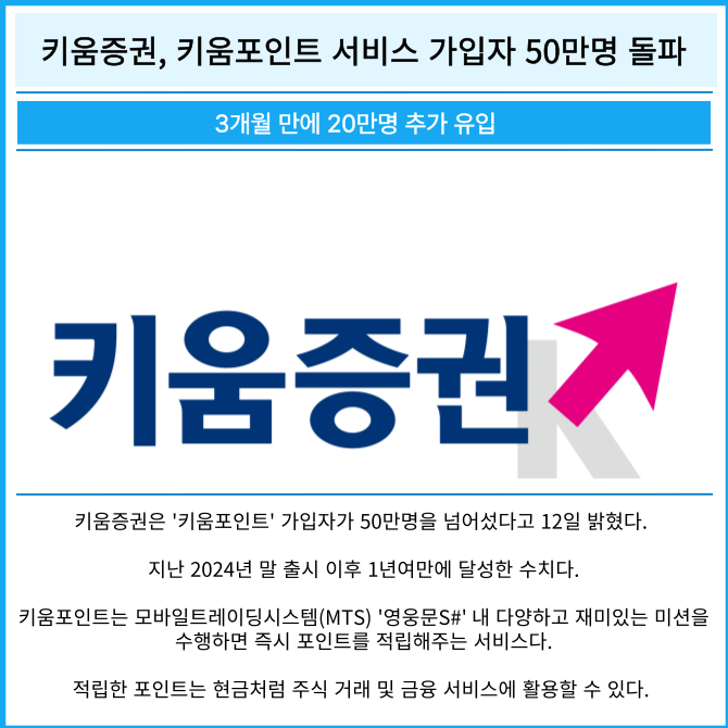 [카드] 키움증권, 키움포인트 서비스 가입자 50만명 돌파