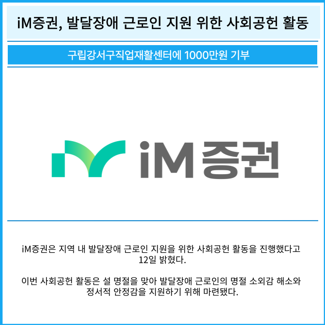 [카드] iM증권, 발달장애 근로인 지원 위한 사회공헌 활동