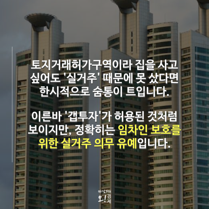 사실상 토지거래허가구역 내 '갭투자' 길을 열어주어 다주택자의 퇴로를 확보하겠다는 취지다.