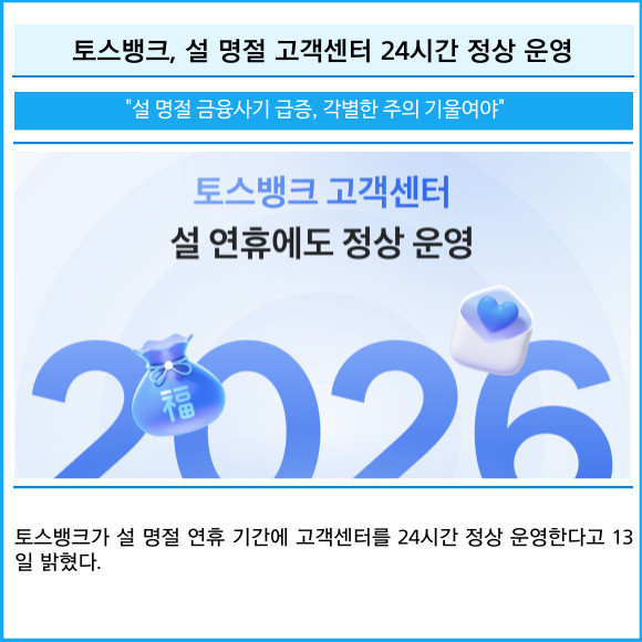 [카드] 토스뱅크, 설 명절 고객센터 24시간 정상 운영