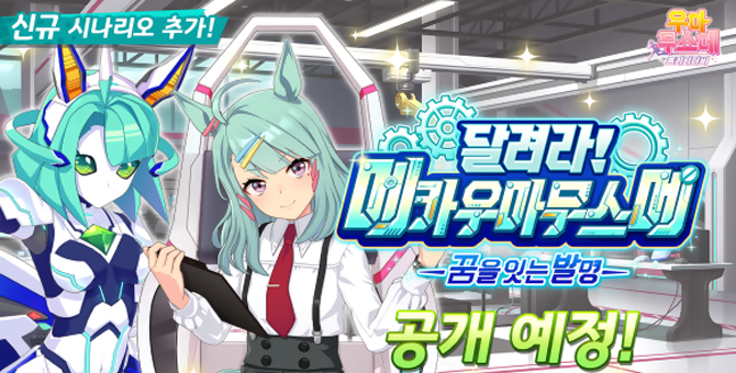 카카오게임즈(293490, 대표 한상우)는 '우마무스메 프리티 더비'에 신규 육성 시나리오 '달려라! 메카 우마무스메 -꿈을 잇는 발명-'을 오는 17일 업데이트한다고 예고했다. 이번 신규 육성 시나리오는 오는 2월 17일 공개되어, 중·장거리 특화 육성 콘텐츠와 새로운 시스템을 통해 한층 확장된 육성 경험을 선보인다. 이번 시나리오는 '트레센 학원'에 등장한 천재 박사 '슈가 라이츠'가 개발한 로봇 '메카 우마무스메 ST-2(새티)'를 중심으로 이야기가 전개된다. 이용자들은 트레이닝으로 모은 에너지를 활용해 기어 칩을 장착하고, '메카 우마무스메 ST-2(새티)'의 성능을 튜닝하며 전략적인 육성을 즐길 수 있다. 이를 기념해 다양한 인게임 캠페인도 마련하는 한편 신규 육성 우마무스메와 서포트 카드도 추가한다.