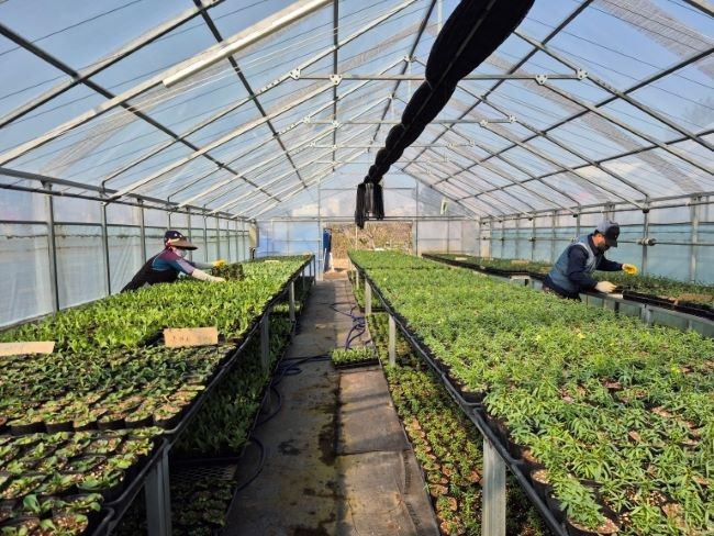 시는 지난 1월 팬지, 금잔화, 데이지, 페츄니아, 리나리아, 오스테우스펄멈, 실비아, 가자니아 등 8종의 봄꽃 플러그 트레이(모종)를 구입해 포트에 옮겨 심은 뒤, 조성해 둔 온실 2동에서 약 두 달간 생육 관리에 집중하고 있다.